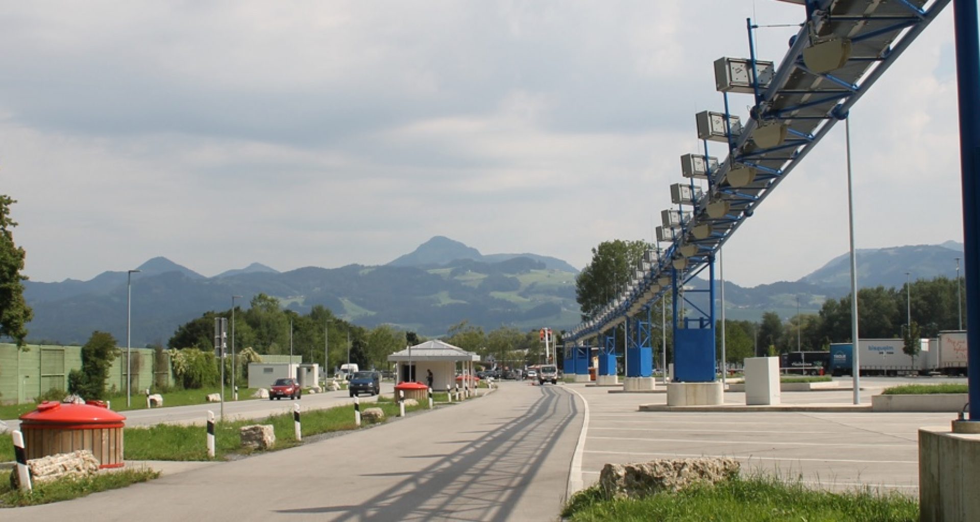 The trucks are parking close to another, spread over several rows, sorted by departure time. At the entrance, they are given an appropriate slot based on the length of the truck and the duration of the desired parking time.